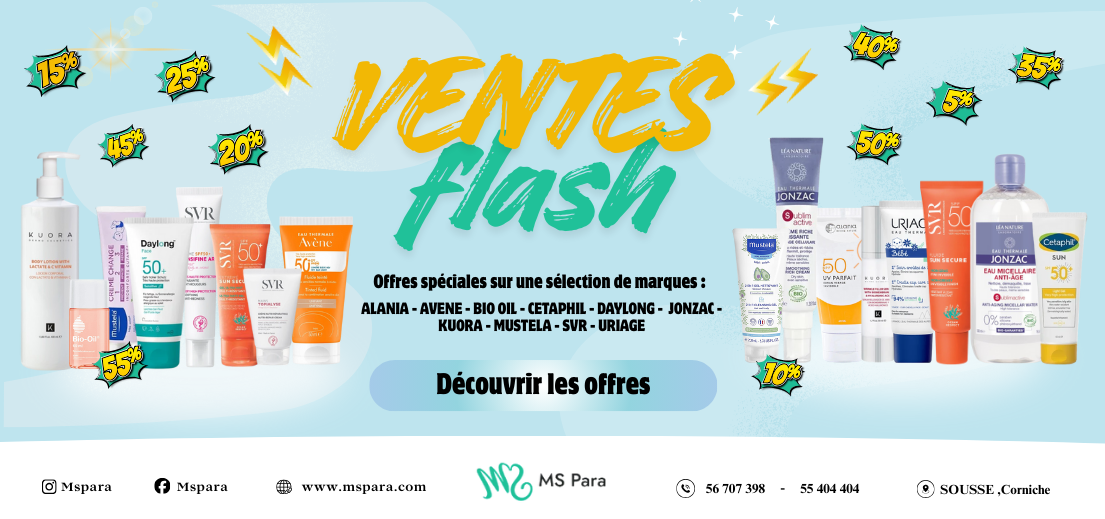 Mspara.com est votre parapharmacie en ligne de confiance en Tunisie. Découvrez une large sélection de produits de santé, de beauté et de bien-être, rigoureusement choisis parmi les meilleures marques parapharmaceutiques. Commandez en toute sécurité et profitez d’une livraison rapide partout en Tunisie, ainsi que d’un service client à votre écoute.
