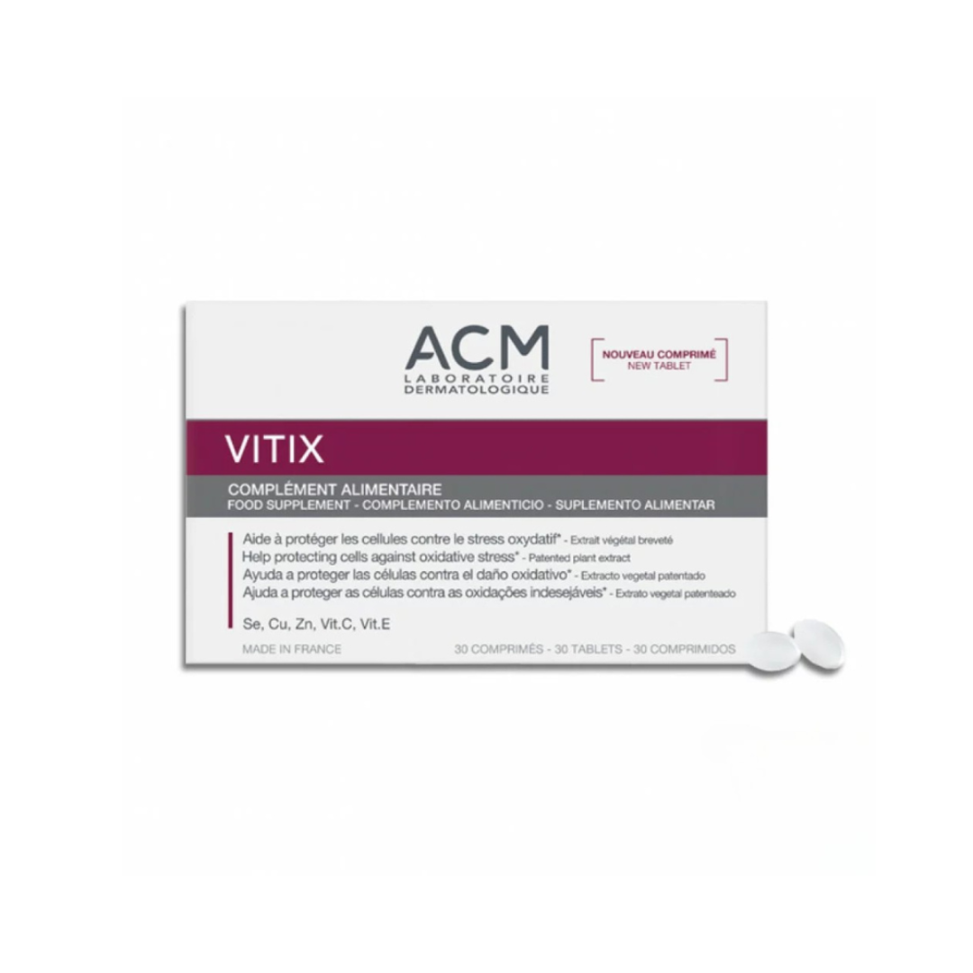 Les comprimés VITIX du laboratoire ACM sont spécialement formulés pour aider à réguler le stress oxydatif et favoriser la repigmentation naturelle de la peau, notamment chez les personnes souffrant de désordres pigmentaires comme le vitiligo.