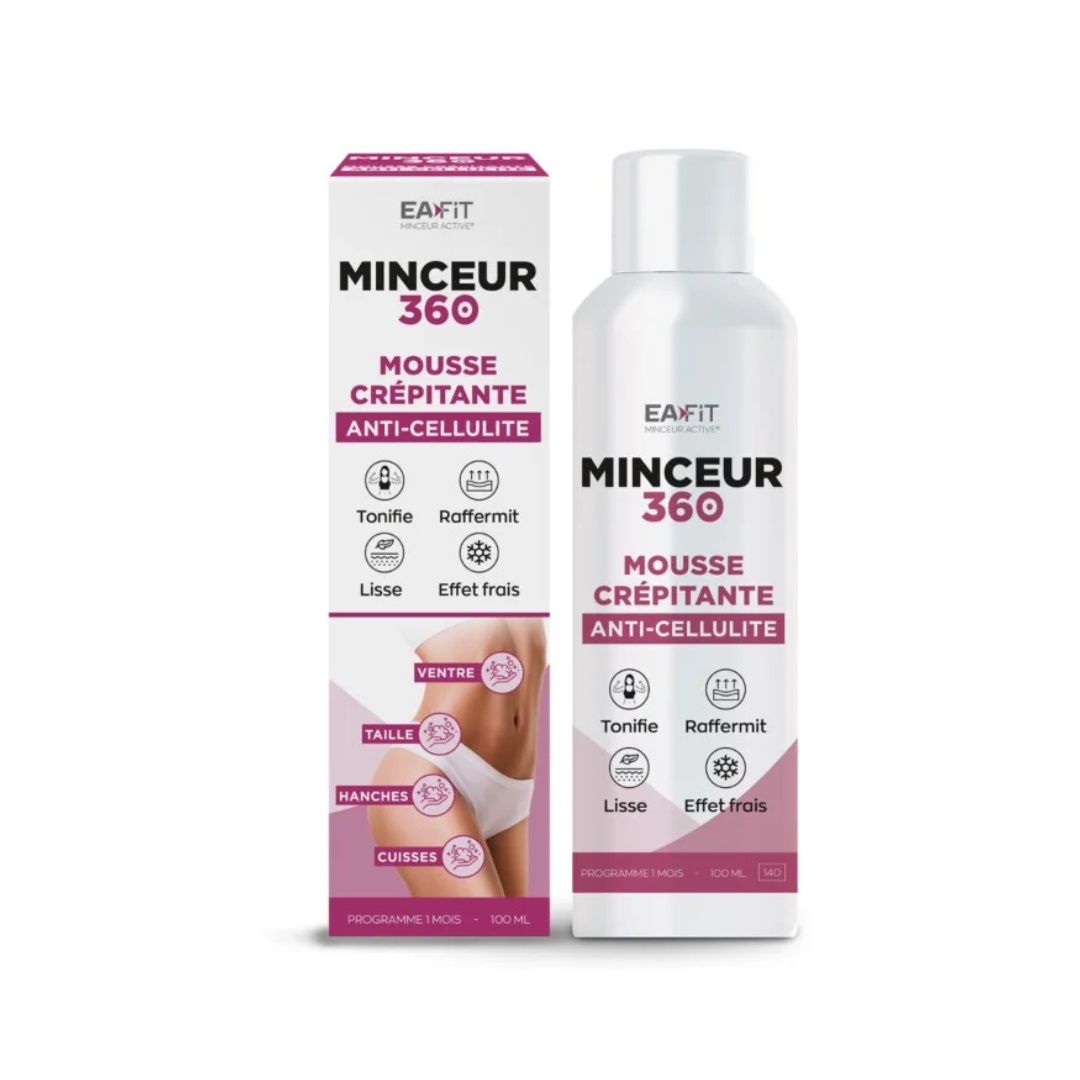 💃 Dites adieu à l’effet peau d’orange et découvrez une peau plus lisse, plus ferme et visiblement affinée avec la Mousse Crépitante Anti-Cellulite Minceur 360 d’EAFIT. Sa texture innovante effervescente et crépitante pénètre rapidement et agit en profondeur pour cibler la cellulite fibreuse, aqueuse et adipeuse.