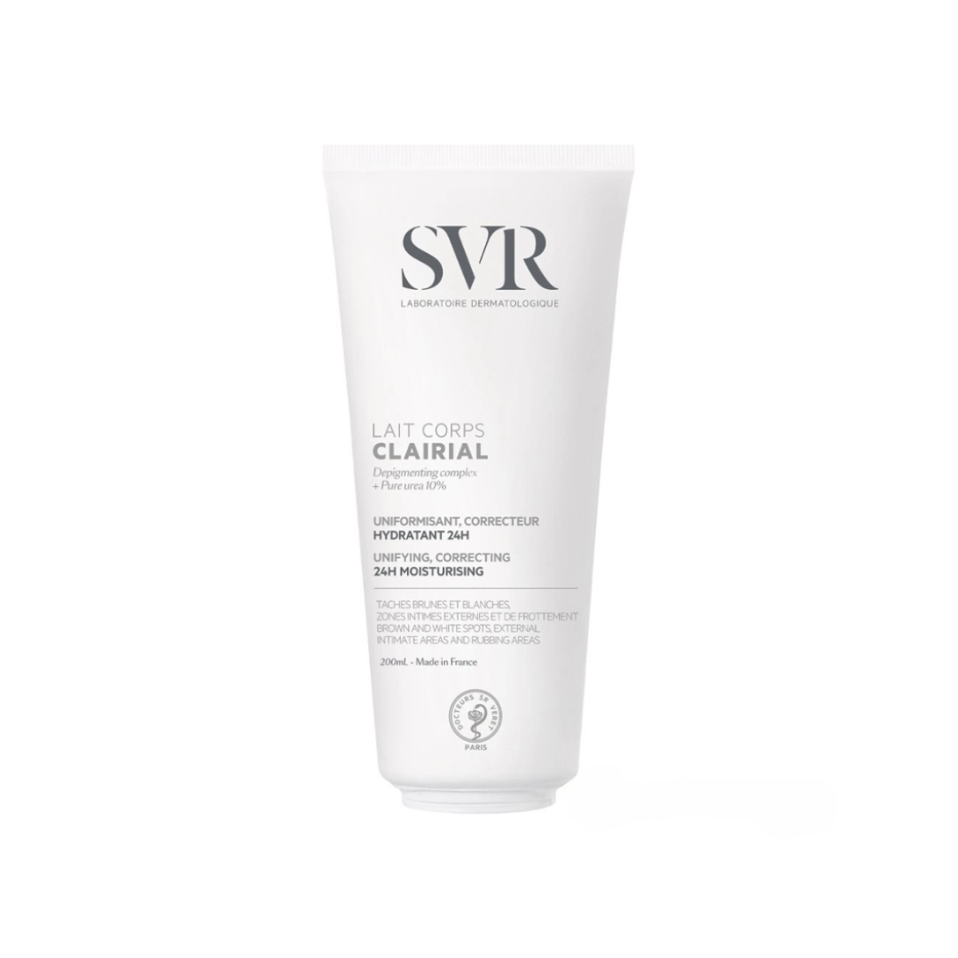 Le SVR Clairial Lait de Corps 200 ml est un soin unifiant haute performance conçu pour corriger les taches pigmentaires sur le corps tout en hydratant intensément la peau.